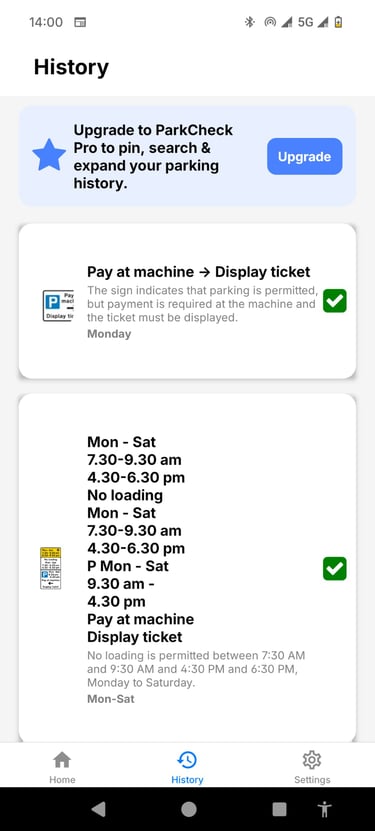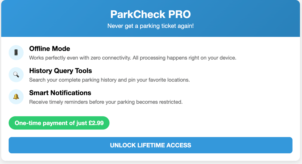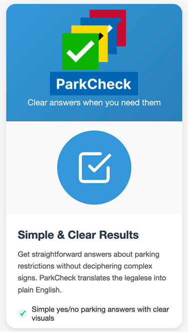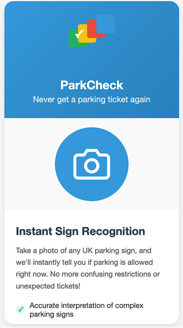 Never get a Parking ticket Again! With ParkCheck, find out instantly whether you can park somewhere or not with our parking and restrictions signs interpreter.
